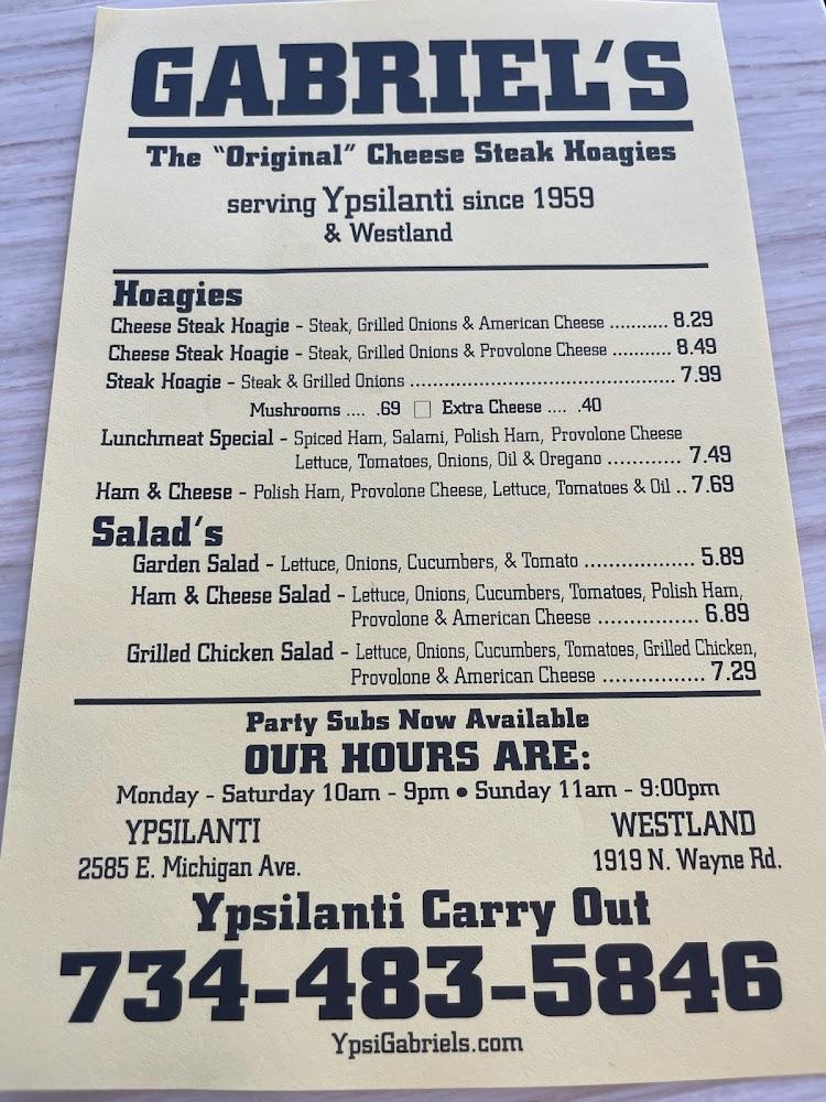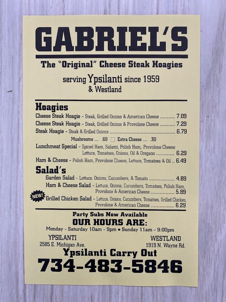 Welcome to Ypsilanti Gabriel's Cheese Steak Hoagies, your go-to destination for authentic cheesesteaks and classic American sandwiches! Located at 2585 E Michigan Ave, our cozy eatery offers a relaxed atmosphere perfect for lunch or dinner, whether you're dining solo or with friends. Enjoy our delicious local specialties, with options for takeout, delivery, and on-site dining. We pride ourselves on our friendly service and accessible amenities, making it easy for everyone to savor our freshly made hoagies. Join us today and experience the taste of tradition in a charming, historic setting!